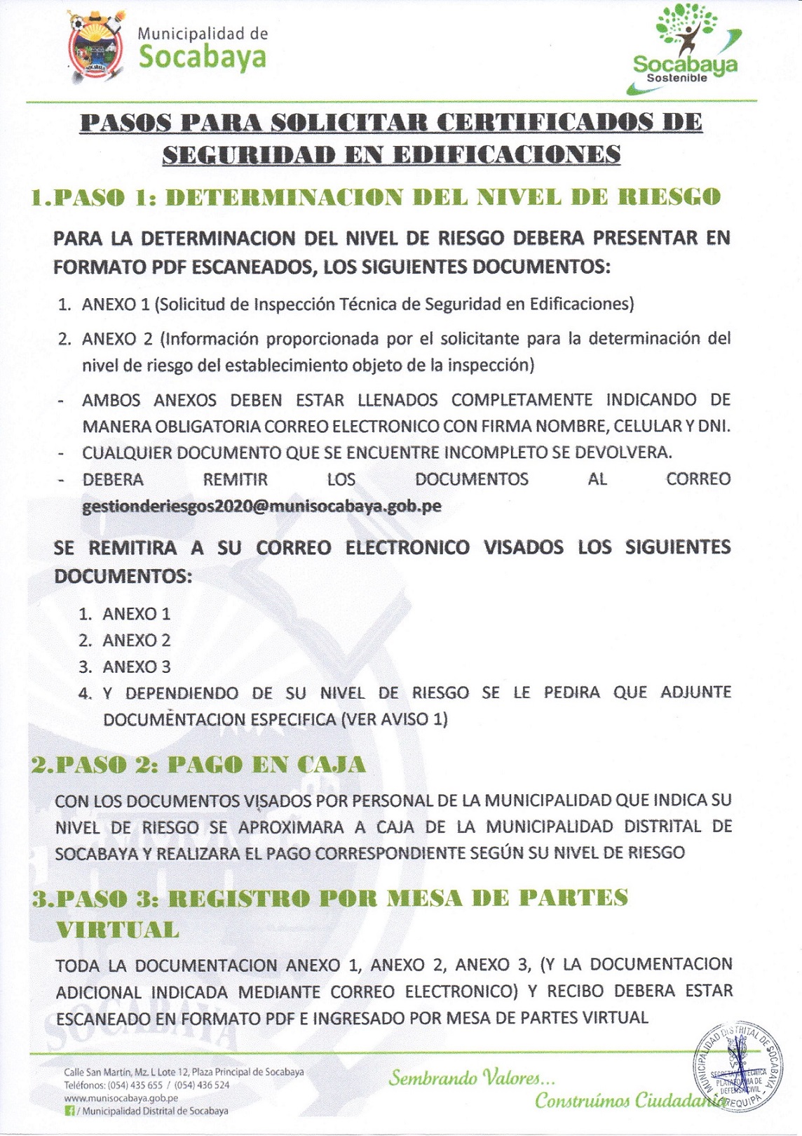 ANEXOS PARA SOLICITAR INSPECCION TÉCNICA DE SEGURIDAD EN EDIFICACIONES (ITSE)